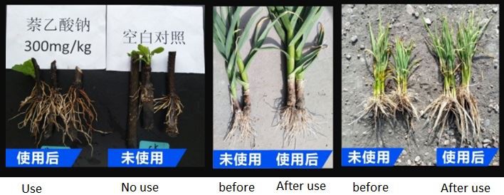 At low concentration, it can inhibit cellulase and inhibit the formation of delamination to prevent falling flowers, fruits, and leaves; at high concentration, it can promote the formation of delamination and can be used to thin flowers and fruits; at high concentrations, it can also induce the production of endogenous ethylene. In turn, dwarf plants, increase yield and promote ripening; improve crops' ability to withstand cold, drought, waterlogging and salt.